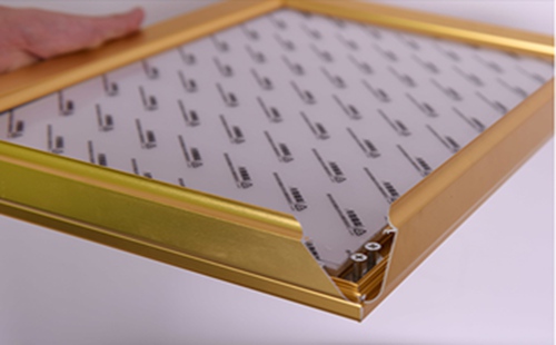 5、裝上壹個畫布,將已經在UV軟膜四周進行安裝的硅膠條,只需將壹些硅膠條嵌入到鋁型材框中即可,換畫也是將膠條拉出自己就可換畫的壹種教學方式,時尚、簡單問題設計,拆換更簡易。